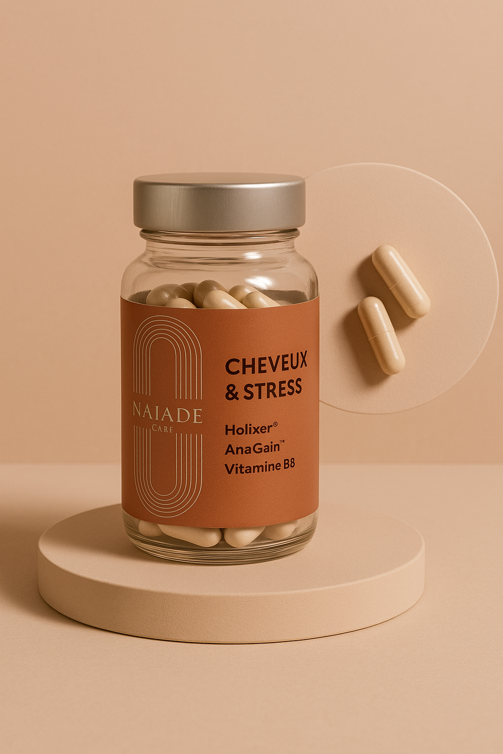 Naiade Care t’apporte le complément alimentaire spécifique pour réduire le stress et renforcer la santé de tes cheveux.
